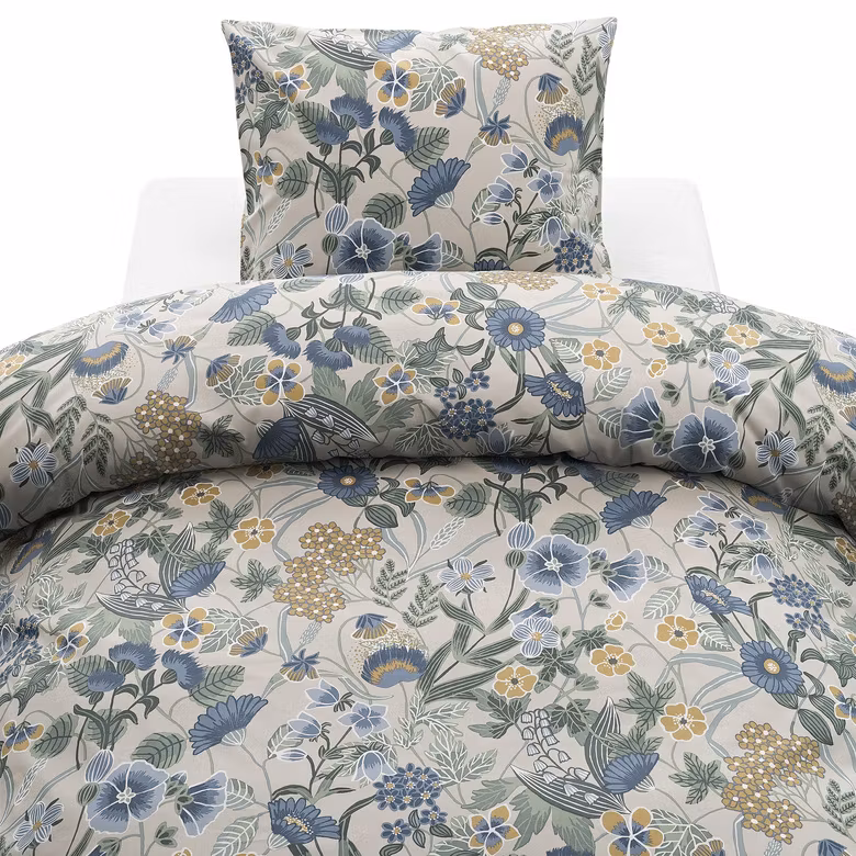 Bäddsetet är tillverkat av 100 % bomull med en trådtäthet på 144 TC, vilket gör det mjukt, följsamt och skonsamt mot huden. Bomullen är andningsbar och fukttransporterande, vilket ger en sval och behaglig sovkomfort året om. Materialet är slitstarkt och håller sig vackert och färgstarkt tvätt efter tvätt, vilket gör det idealiskt för barnens vardag.