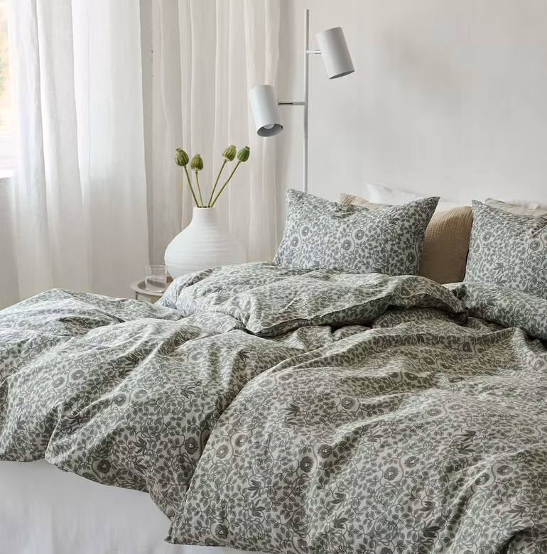 Botanique Grön bäddset från Borganäs of Sweden är ett perfekt val för dig som vill skapa en rofylld och stilren sovmiljö. Med sitt naturnära blommönster, mjuka bomull och genomtänkta detaljer kombinerar det komfort, kvalitet och hållbar design – ett bäddset att njuta av varje natt.