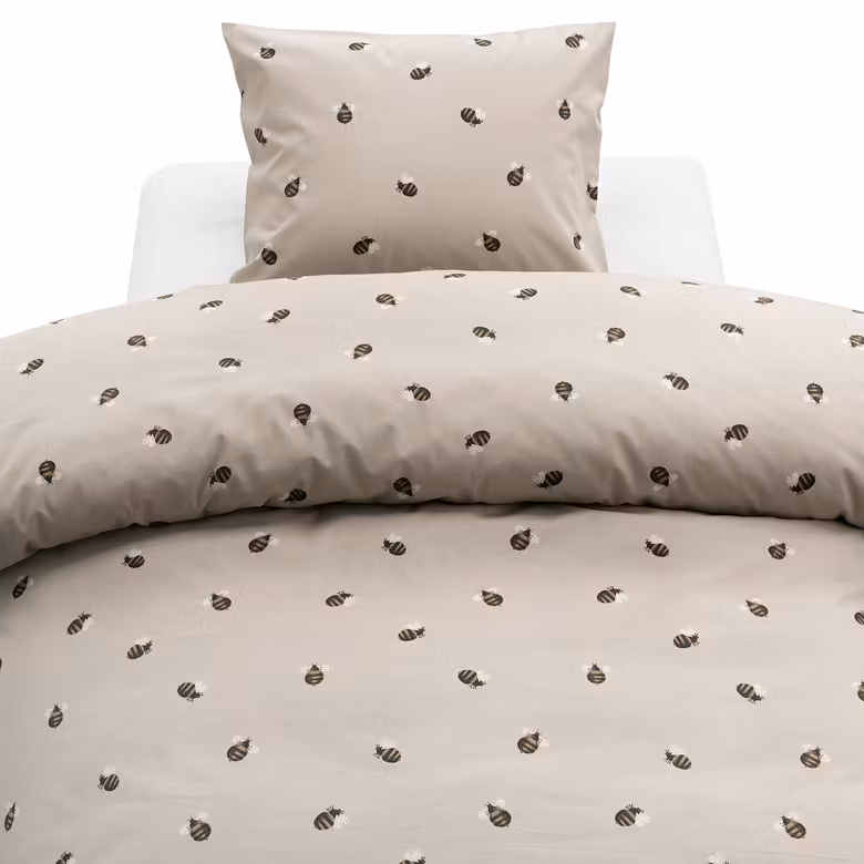 De detaljerade små humlorna i diskreta färger ger bäddsetet ett naturligt och charmigt uttryck som passar i alla typer av sovrum. Den varma beige tonen bidrar till en avslappnad och rofylld känsla, samtidigt som mönstret tillför liv och personlighet till rummet. Humla är bäddsetet som kombinerar komfort, stil och hemtrevnad i ett.