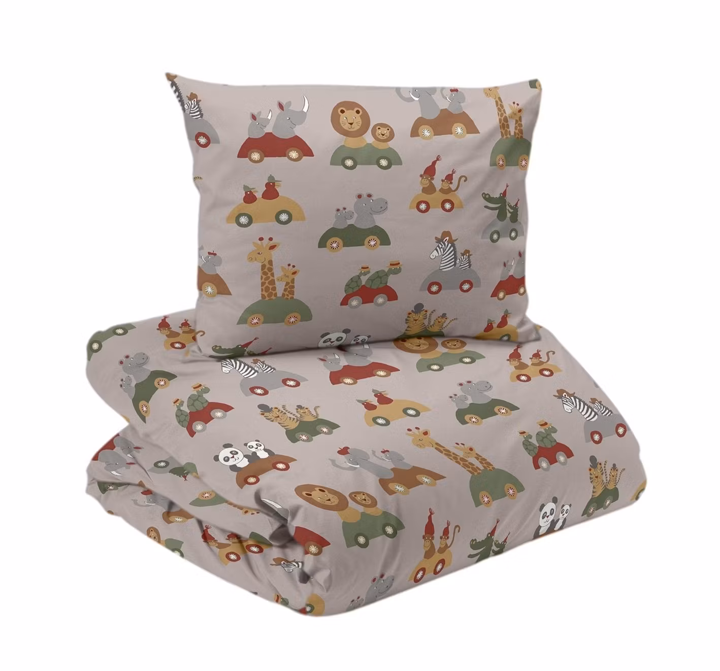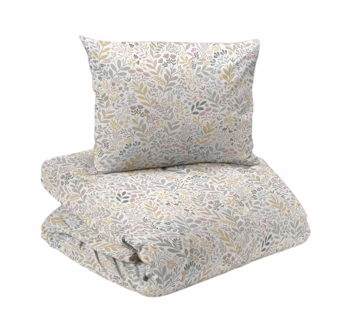 Bäddsetet är tillverkat i 100 % bomull, ett naturligt och andningsbart material som känns svalt mot huden på sommaren och varmt under kyligare nätter.