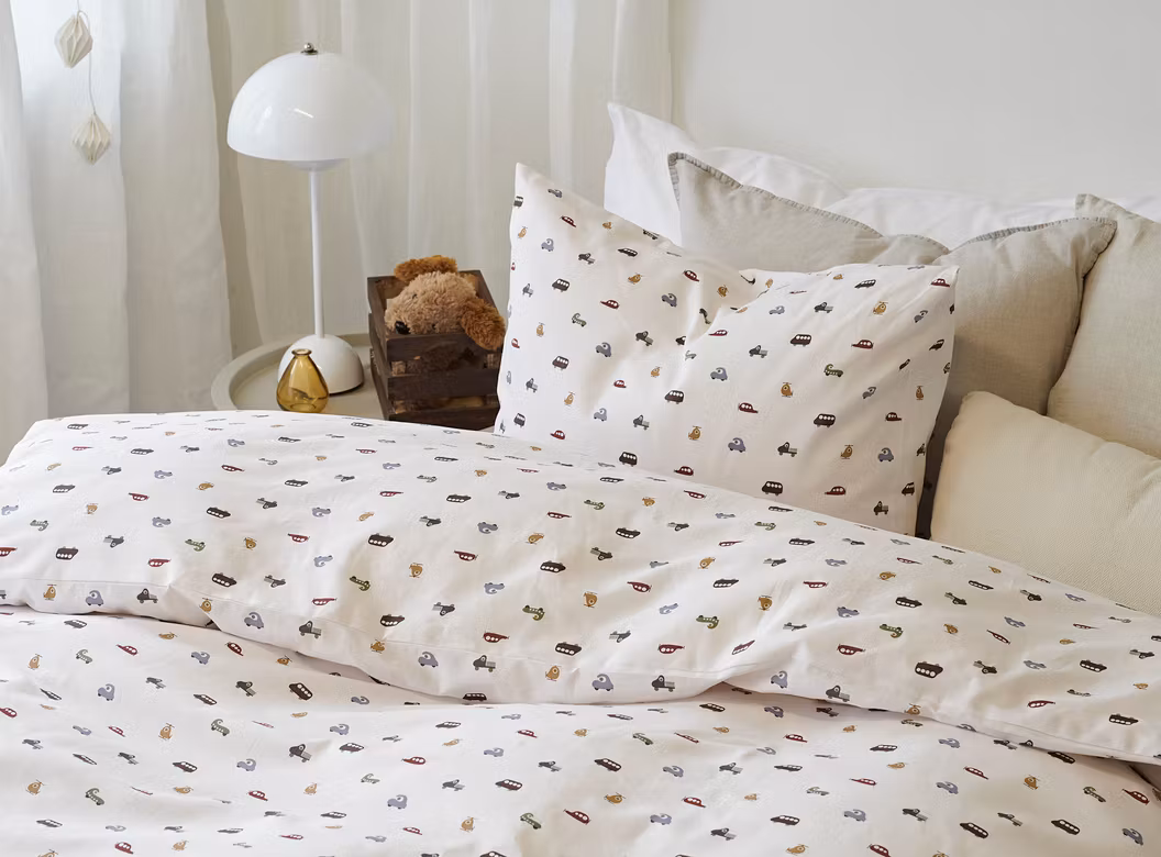 Egenskaper: Påslakan med hörnhål, örngott med kuvertöppning